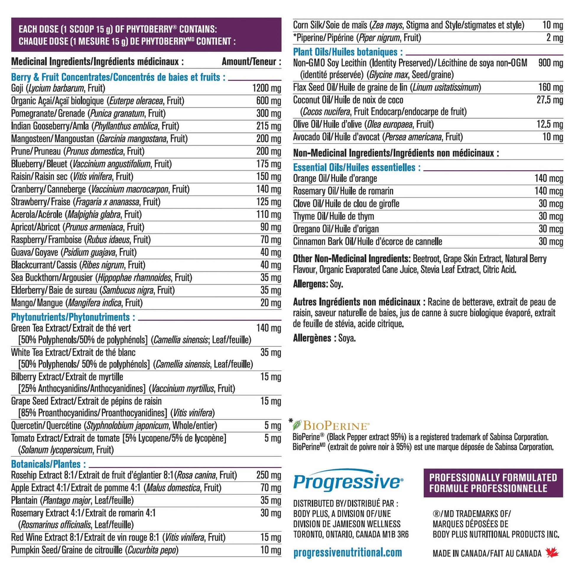 Progressive PhytoBerry 1080g — Produits Sante General.